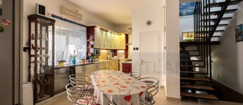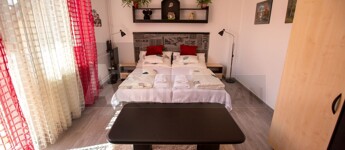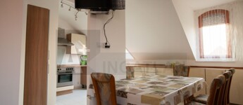 I.lakás: 105 m2 +14,5 m2 terasz. Két bejárattal rendelkezik. Földszinten hálószoba, nappali, konyha-étkező, kamra, fürdő és különálló WC. Emeleten: egy szoba, fürdőszoba, különálló WC és egy kis dolgozó rész.