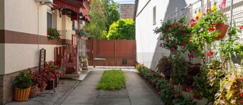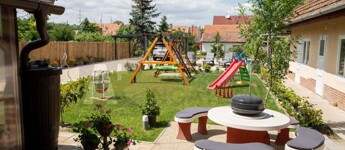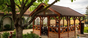 Az udvarban kapott helyet egy 16 m2-es kerti kiülő, mely egyszerűen téliesíthető és egy kerti sütögető-bográcsozó. Esővízgyűjtésre öt db beépített víztároló szolgál közel 1000 liter víz tárolásához.