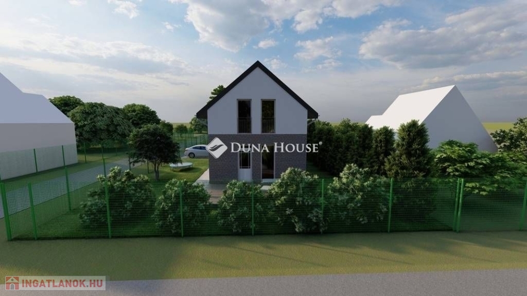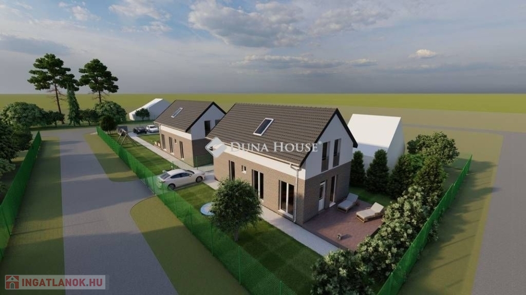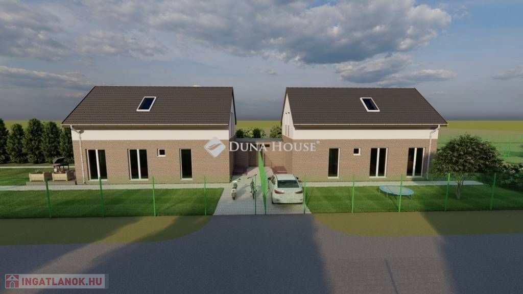 Egy telken belül - megosztott használatban - két egyforma ház épül. Ehhez az ingatlanhoz 234 négyzetméter alapterület tartozik. A telken elhelyezkedő ház 103 négyzetméter. Két szintet kapott. Az alsó szinten kialakításra került egy nappali + konyha, egy szoba, fürdőszoba + WC, közlekedő, illetve egy kamra. A nappaliból nyílik a terasz, ami 18 négyzetméteres. A lépcsőn feljutunk a tetőtér közlekedőjébe, ahonnan külön nyílik két szoba, illetve egy zuhanyzó + WC.