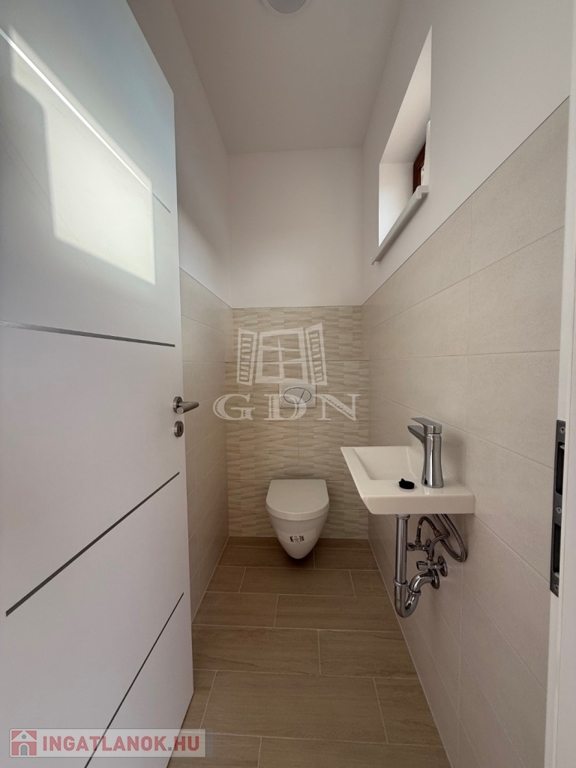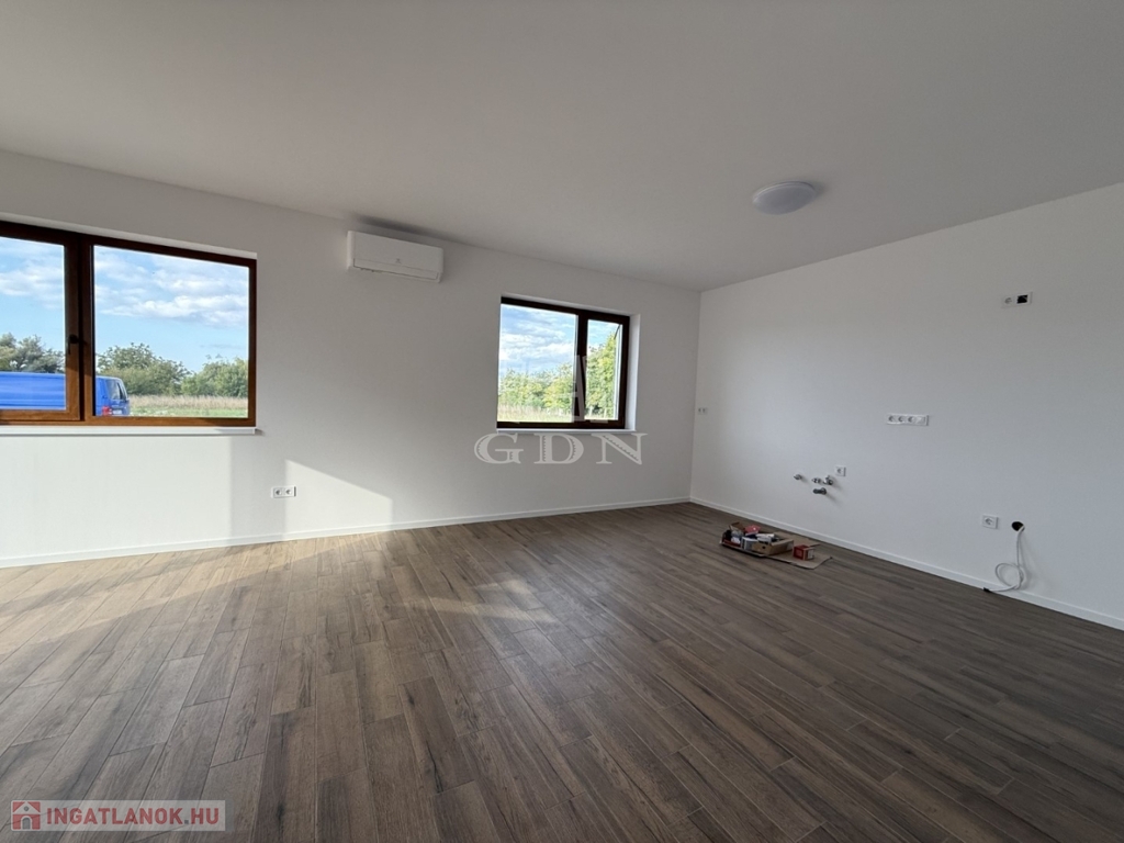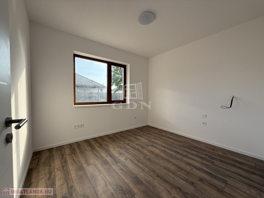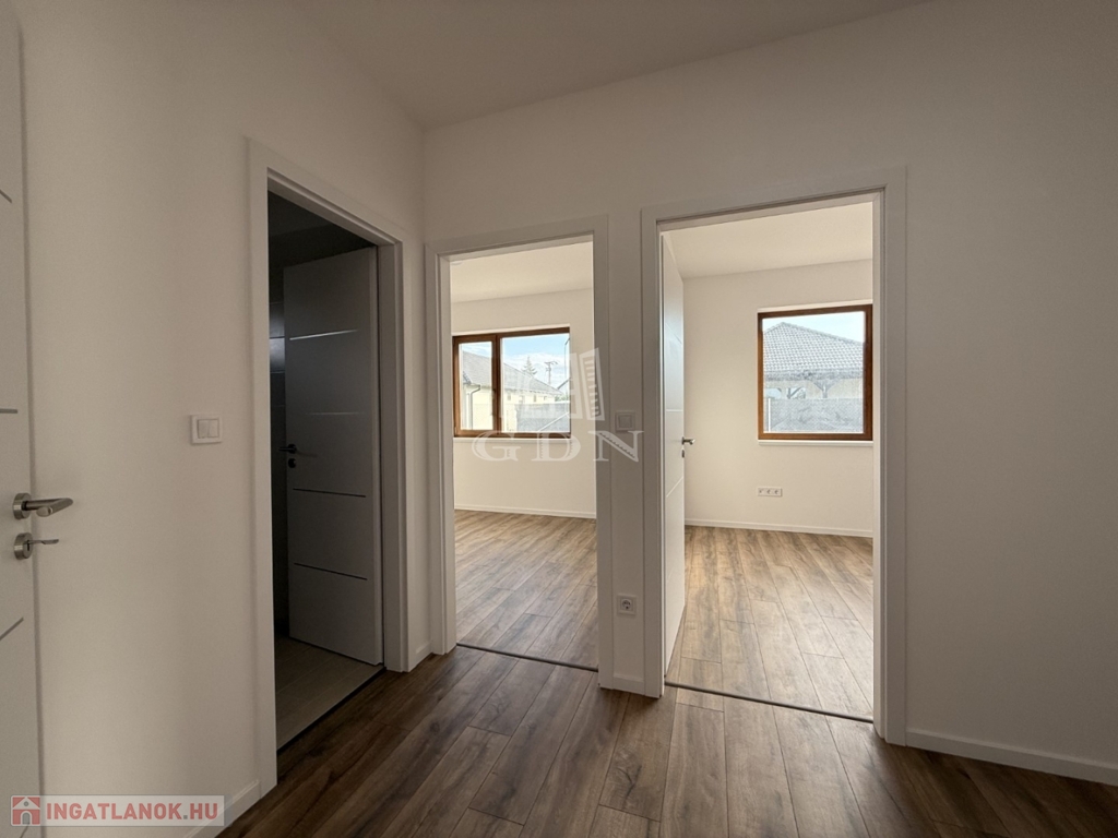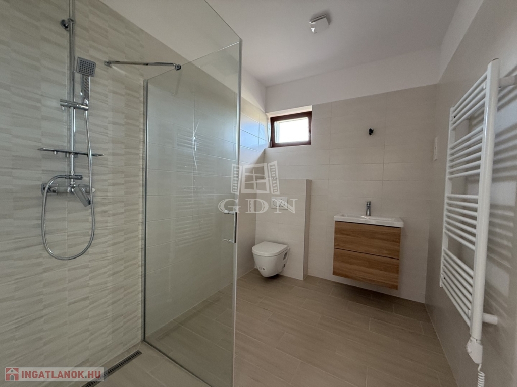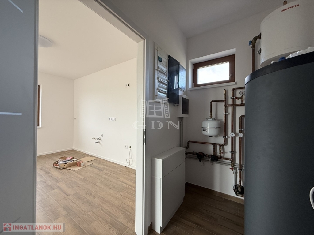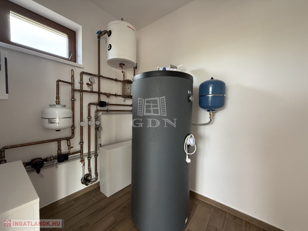 A nyílászárók műanyagból készültek,3 rétegű hőszigetelt üvegezéssel, rejtett redőny tokkal. A burkolatok magas minőségű járólap, illetve laminált padló. Fűtése-melegvíz: hőszivattyú megoldással, padlófűtéssel.