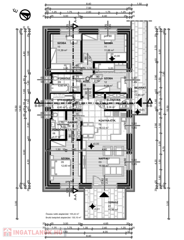 • 4 szobás ház nettó 105m2 (nappali + 4 szoba): ELKELT