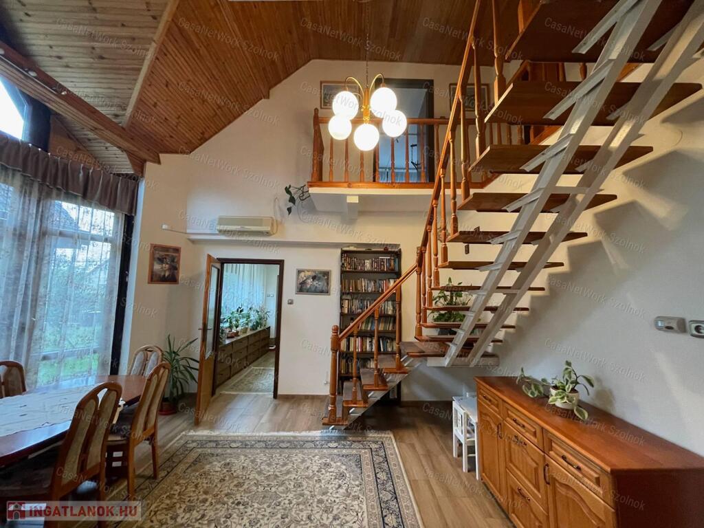 Igényesen megtervezett és kivitelezett ingatlanba belépve egy tágas előszoba fogadja, melyből egy szoba és egy lélegzetelállító panorámás világos, galériás nappali van, ami fényáradatban úszik a hatalmas, ablakoktól. Egy praktikus lépcső vezet fel a galériába, ahol 3 szoba, egy fürdőszoba WC, és egy tároló van. A nappaliból nyílik egy 19 m2-es UV álló polikarbonáttal fedett és szőlőlugassal futtatott terasz.