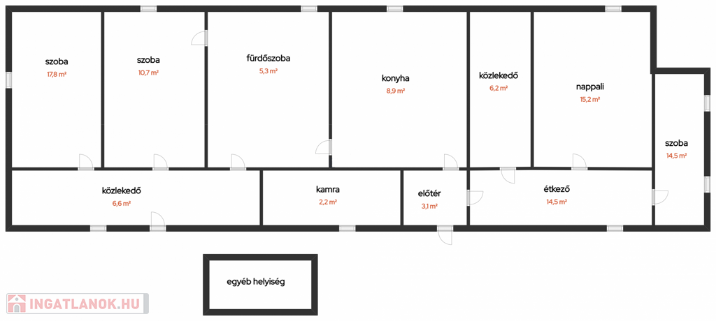 Alapterület: 113,97 nm – jól kihasználható, tágas tér