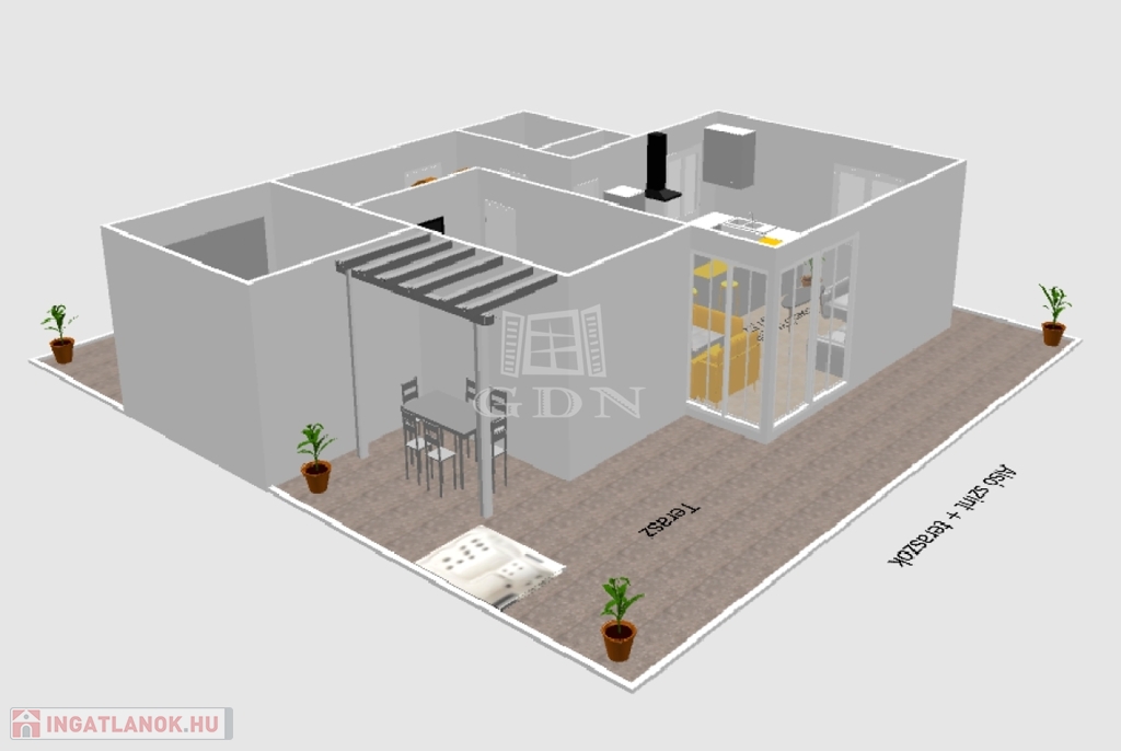 - tágas terasz, szaletlivel és beépített, süllyesztett JAKUZZIVAL,