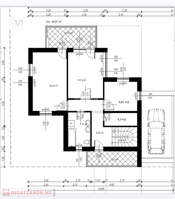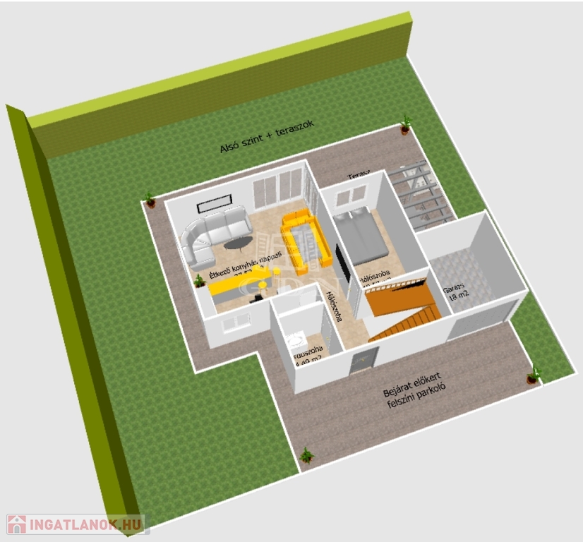 - 2 autó számára alkalmas garázs,