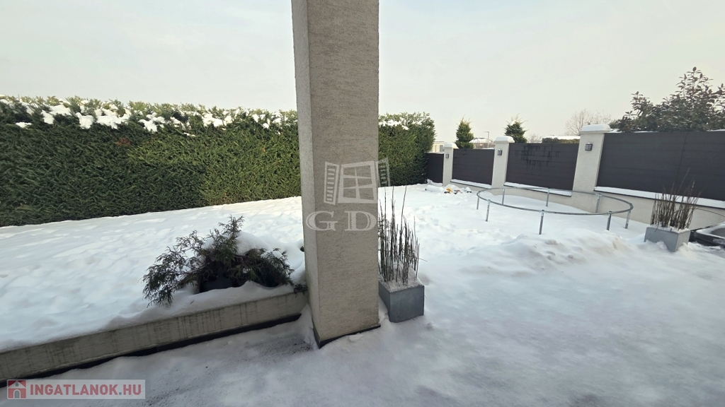 Az 500 m2 területű, kertész által gondozott kert egyik kiemelkedő éke a megközelítőleg 3,5 méter magas babérmeggy élőfal, amely kellő intimitást ad az itt lakók számára.