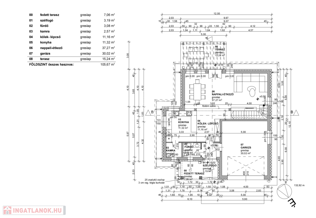 • Tető: Terrán Coppo Ódon betoncserép, 50 év garanciával