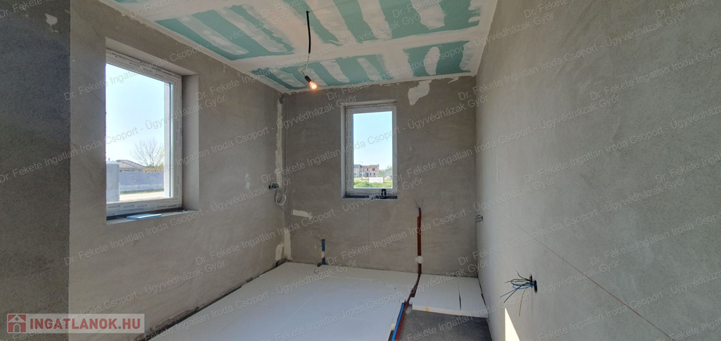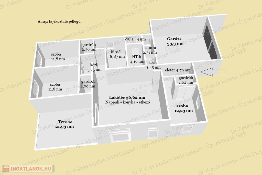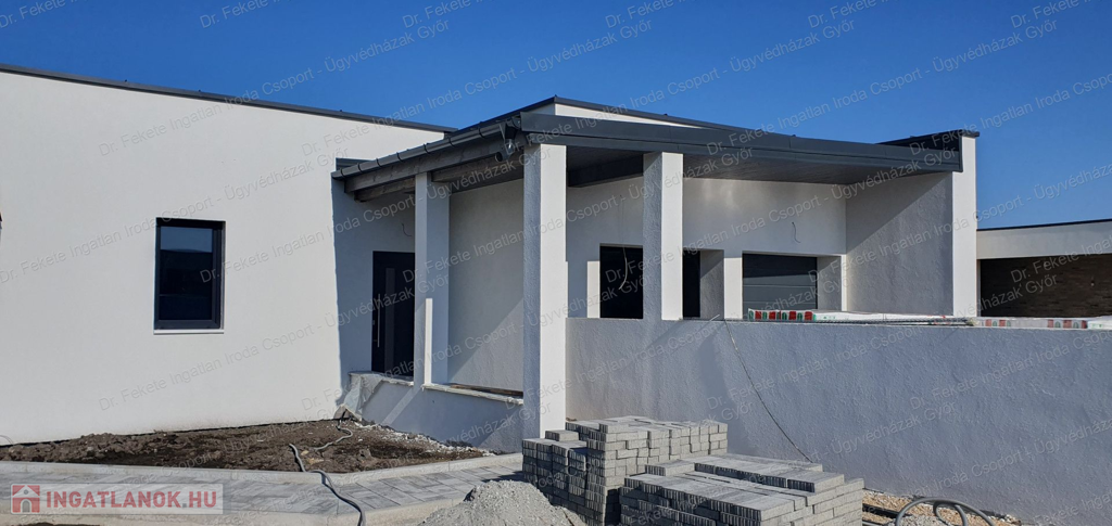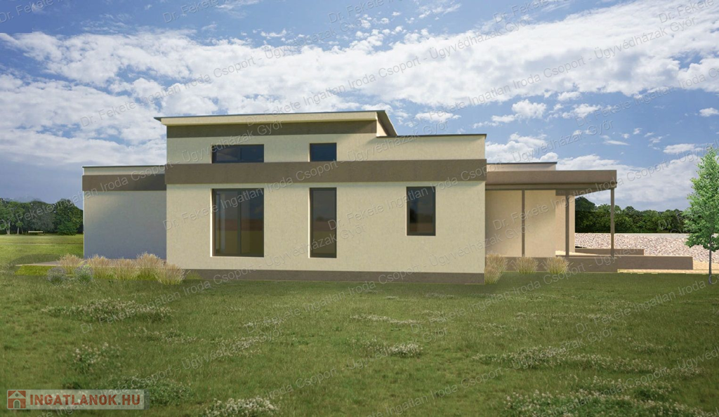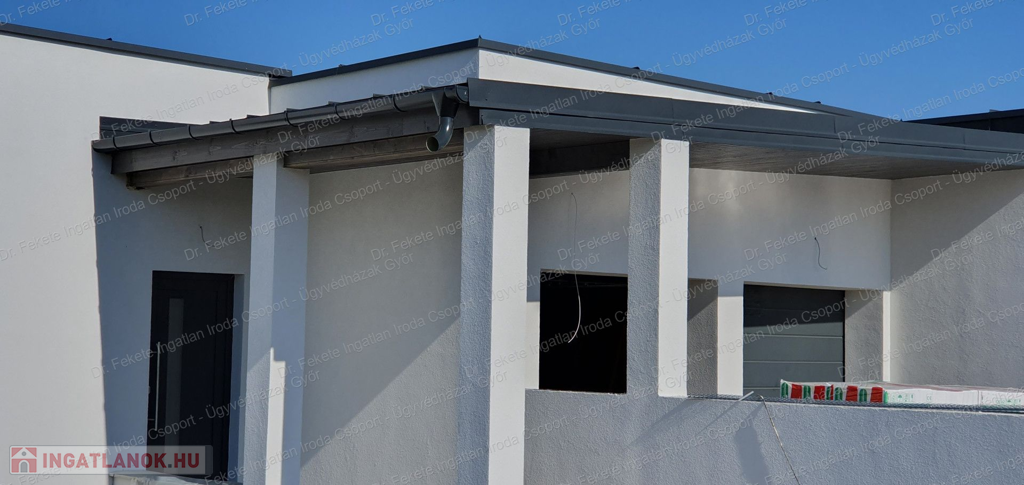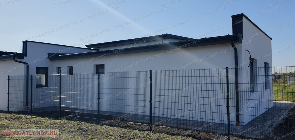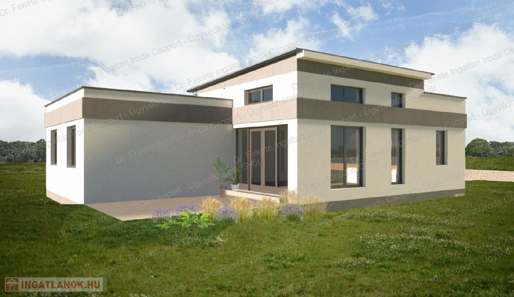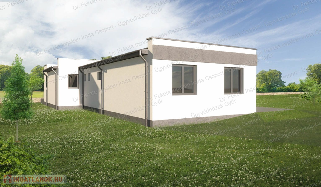 106,69 nm lakótér-nappali +3 szoba, + 33,3 nm-es fűtött, dupla garázs, terasz + 21,93 nm. Telek: 654 nm.