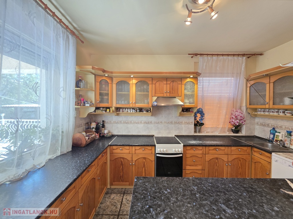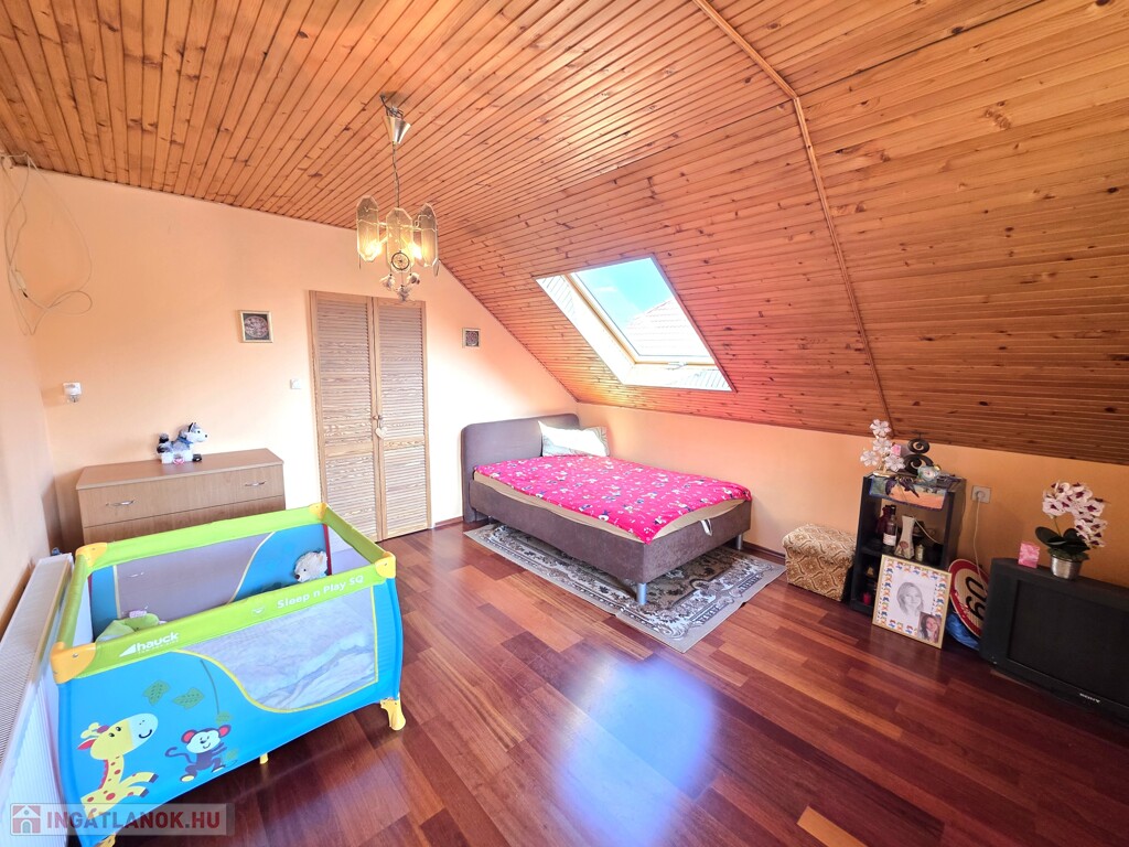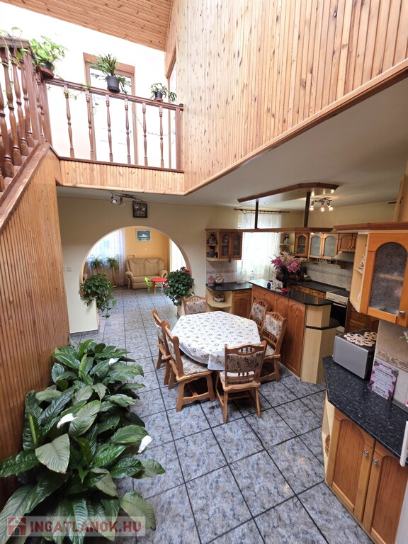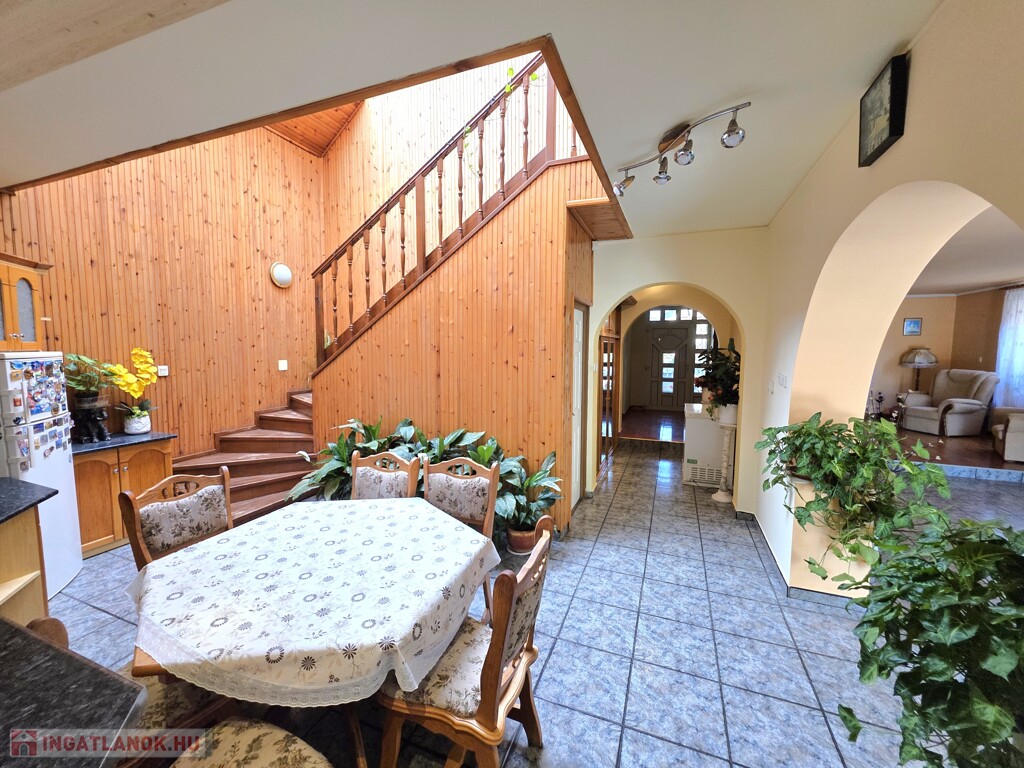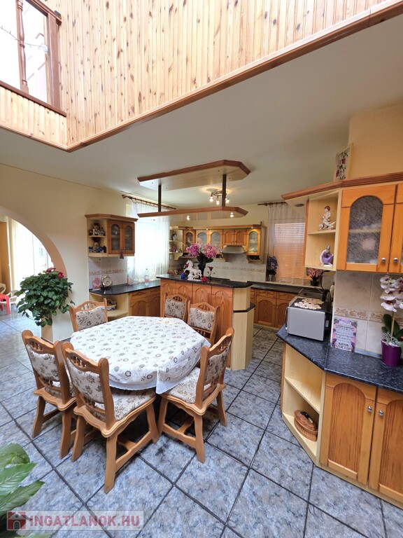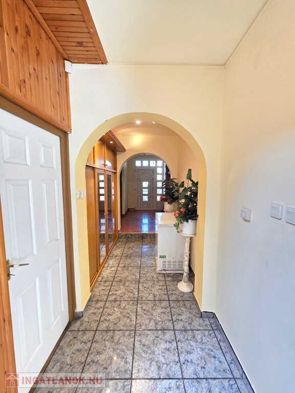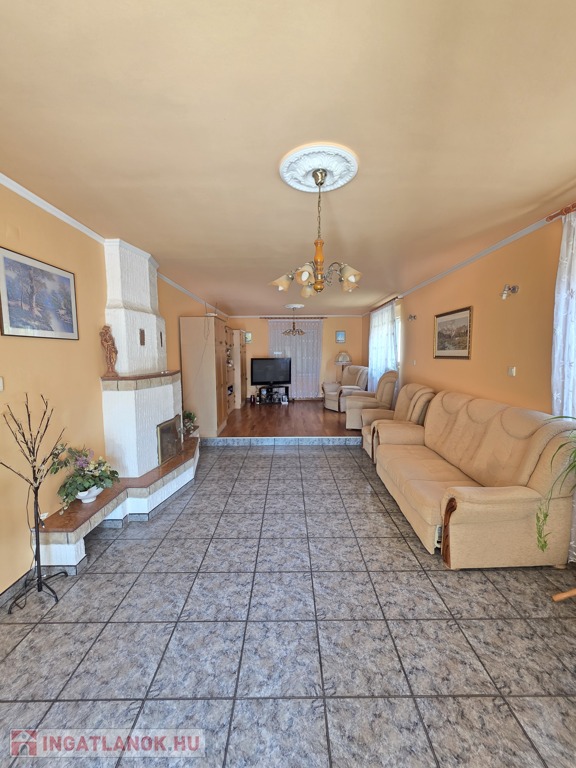 Az ingatlant 1995-ben építették 38-as porotherm téglából. A ház külső hőszigetelő vakolatot kapott. A földszinten padlőfűtés, az emeleten radiátorok vannak. A ház fűtését gázkazán biztosítja (3 éves). A nyílászárók körszerű műanyag ablakok, a tetőtérben 3 rétegű ablakok. A nappaliban igazán hangulatos kandalló kapott helyet. A nyári melegben két klíma biztosítja a kellemes hőfokot. A ház elrendezése alkalmas üzleti rész kialakítására is. A földszinten nagyszoba, fürdőszoba, konyha étkező és hatalmas nappali található. A felső szinten pedig négy folyosóról nyíló szoba és egy fürdőszoba. A pinceszint kiválóan alkamas bolt kialakítására, vagy más üzleti célú tevékenységnek.