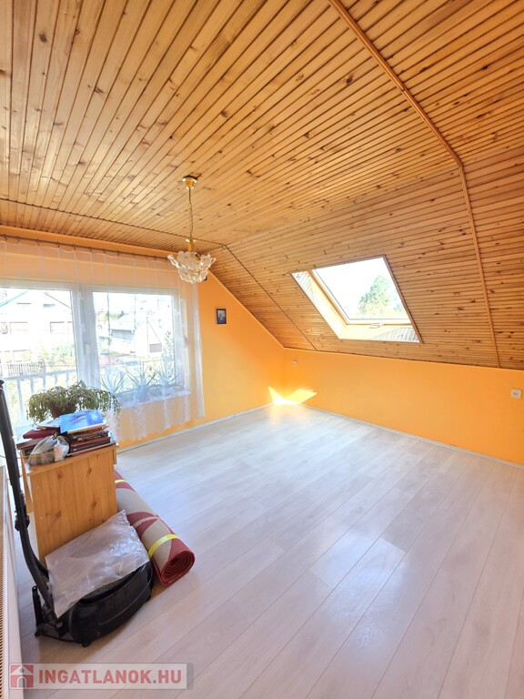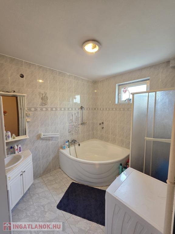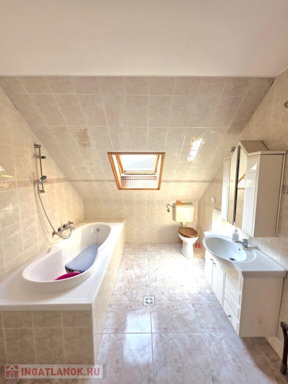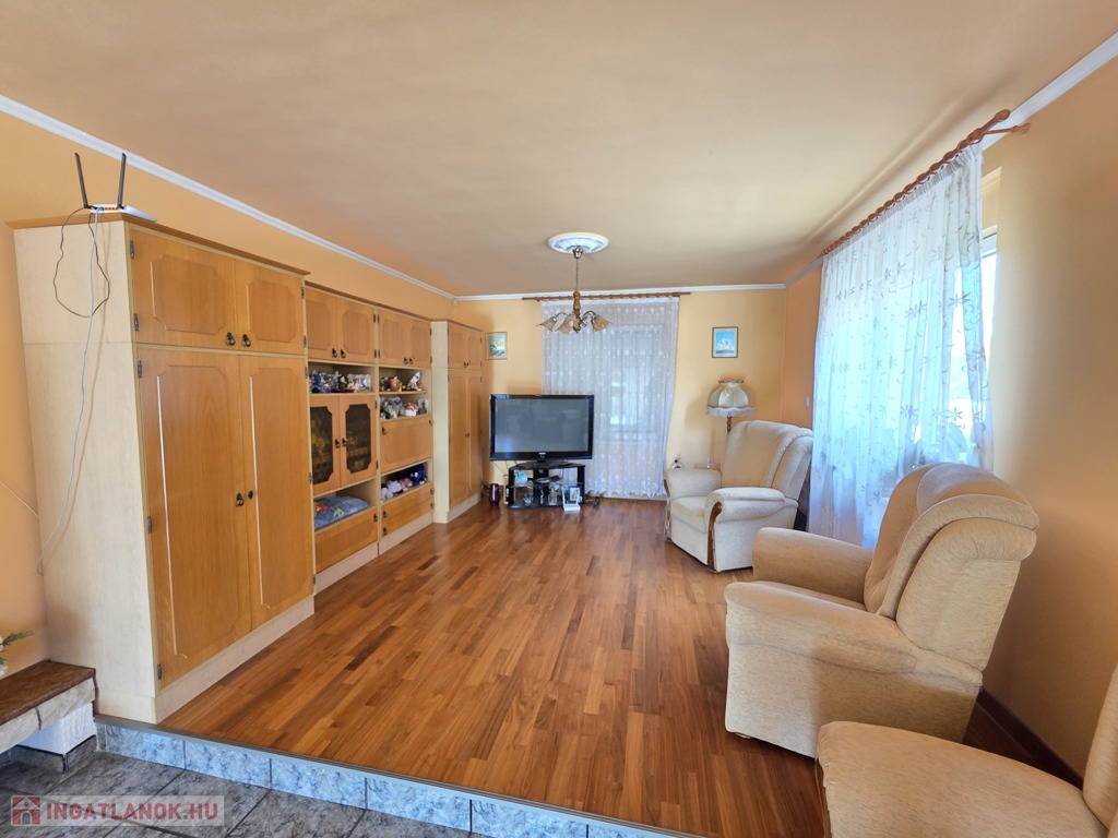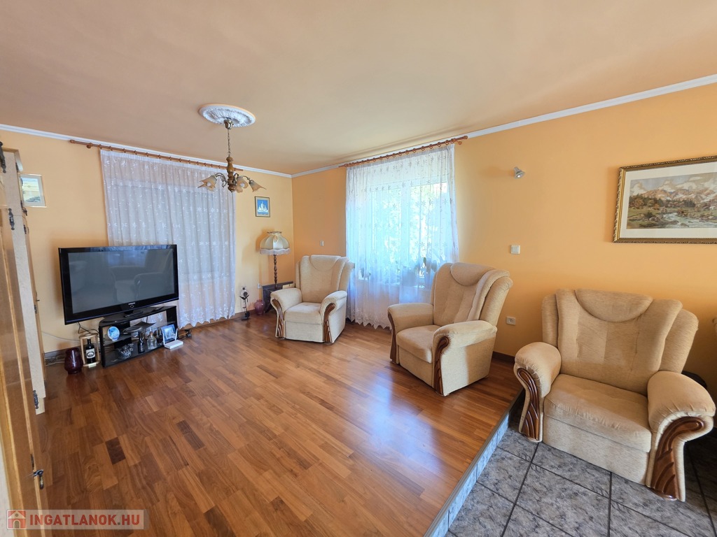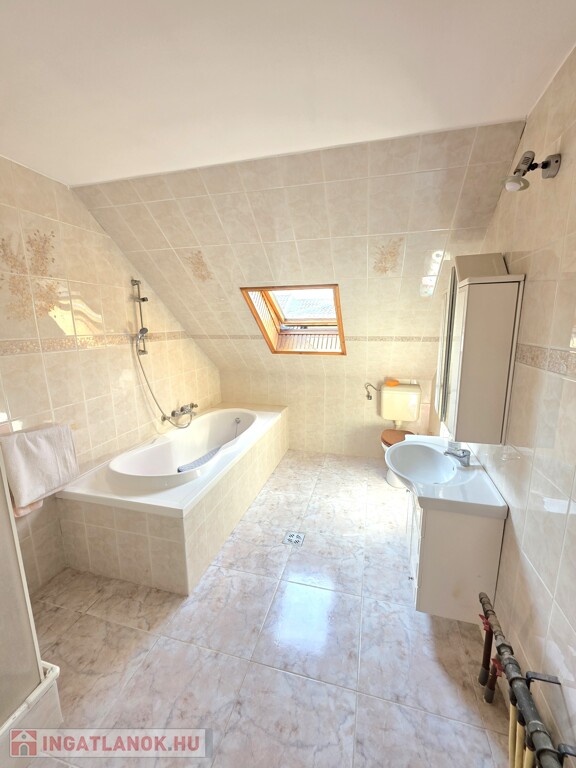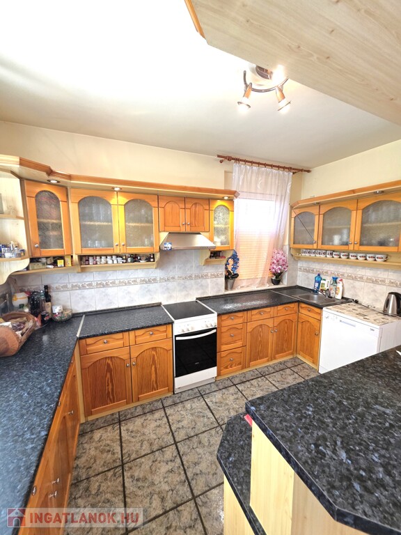 Az ingatlant 1995-ben építették 38-as porotherm téglából. A ház külső hőszigetelő vakolatot kapott. A földszinten padlőfűtés, az emeleten radiátorok vannak. A ház fűtését gázkazán biztosítja (3 éves). A nyílászárók körszerű műanyag ablakok, a tetőtérben 3 rétegű ablakok. A nappaliban igazán hangulatos kandalló kapott helyet. A nyári melegben két klíma biztosítja a kellemes hőfokot. A ház elrendezése alkalmas üzleti rész kialakítására is. A földszinten nagyszoba, fürdőszoba, konyha étkező és hatalmas nappali található. A felső szinten pedig négy folyosóról nyíló szoba és egy fürdőszoba. A pinceszint kiválóan alkamas bolt kialakítására, vagy más üzleti célú tevékenységnek.