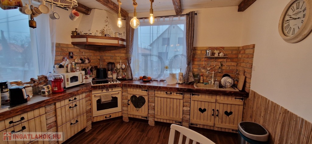 • Vintage stílus, modern megoldások: A konyha és a fürdőszobák stílusos felújításon estek át, minőségi burkolatokkal és egyedi konyhabútorral. A nappaliban egy minőségi és egyedi cserépkályha teszi még különlegesebbé a teret.