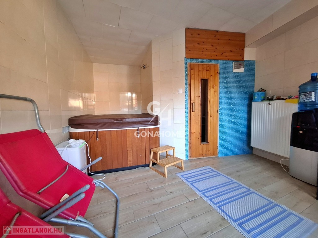 - A két szinten található: 5 egész szoba, 2 félszoba, 3 fürdőszoba, konyha, kazánház, közlekedők, Finn szauna, jakuzzi.