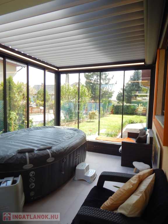 A lakóteret 2024 őszén a Sollis által kialakított ultramodern , elektromos tetőszerkezettel, tolóajtókkal,ZIP árnyékolókkal és 25 m²-es télikerttel egészítették ki, melybe 7 személyes jacuzzi és pihenő-olvasó sarkokat is beépítettek. Az emeleten egy 2 m²-es erkély teszi még vonzóbbá a Balatoni panorámát. A fűthető télikert ideális hely a kávézáshoz, nyugodt olvasáshoz,home office munkához vagy pihenéshez minden évszakban.