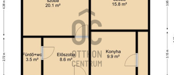 - Fűtése - szobákban - konvektorral, míg a konyhában - a kémény felújítását követően - kandallóval is megoldható.