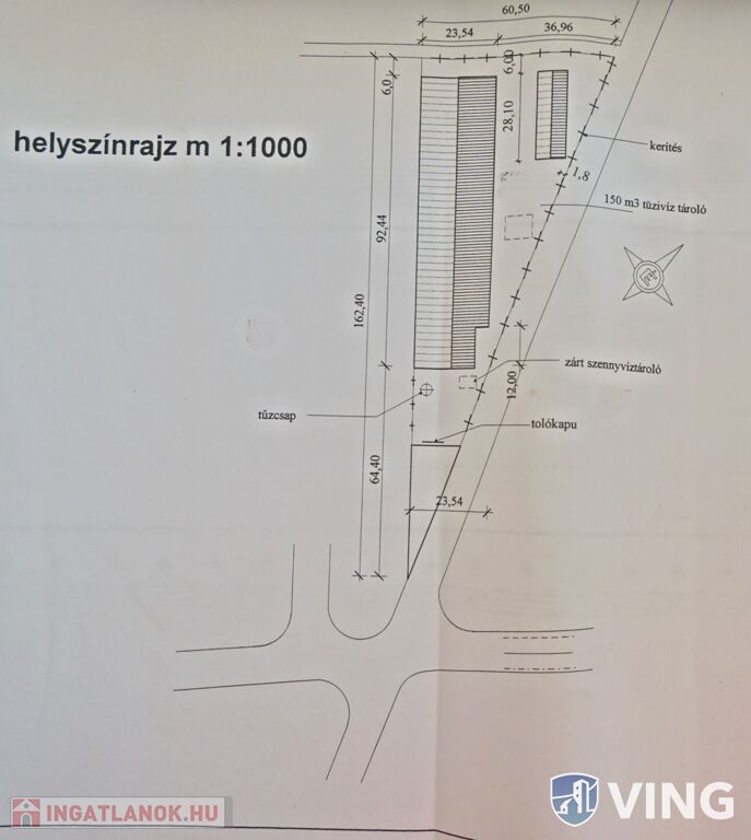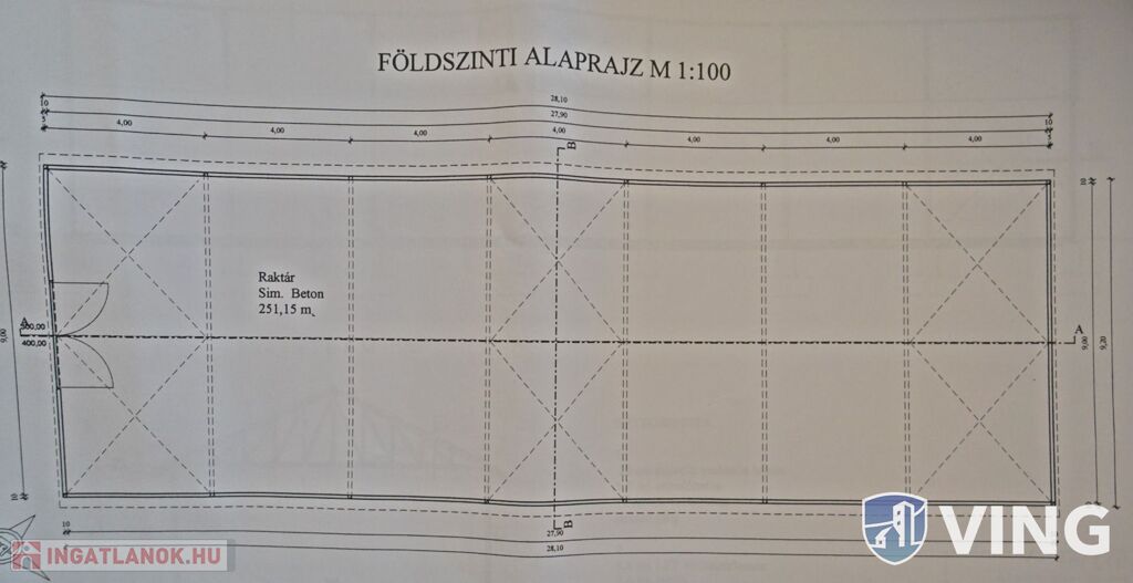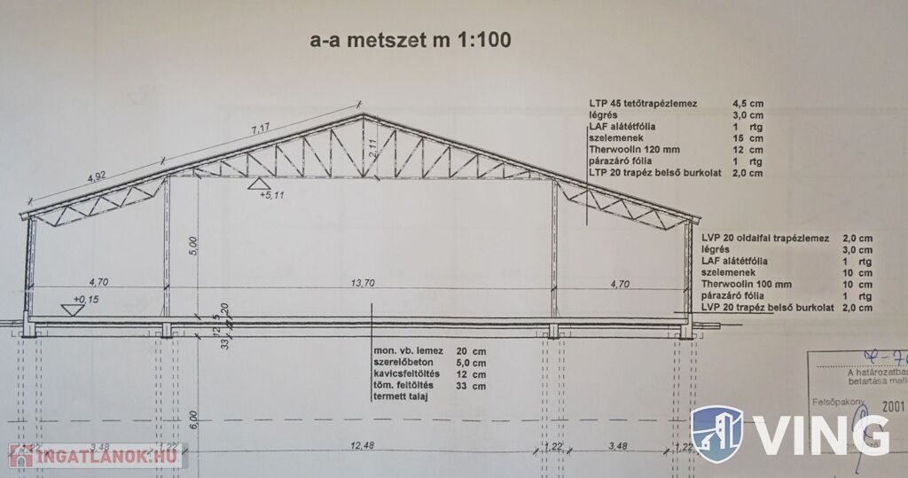 Külön álló 252 m2 beton alapú,lemez falú raktárral.