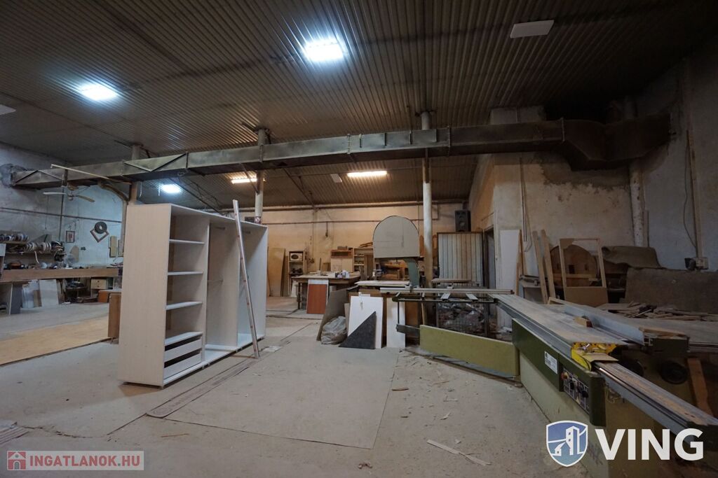 Több részlegből áll( átvétel, előkészítés, lapszabászat, kárpitozás, raktározás, iroda, teakonyha, öltözők, WC-mosdó helyiségek, 60 m2 alapterületű kiváló állapotú galériázott lakással.