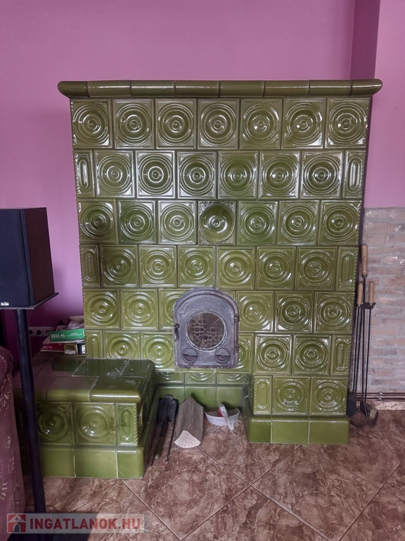 A ház fűtése gázkazánnal és cserépkályhával biztosított.