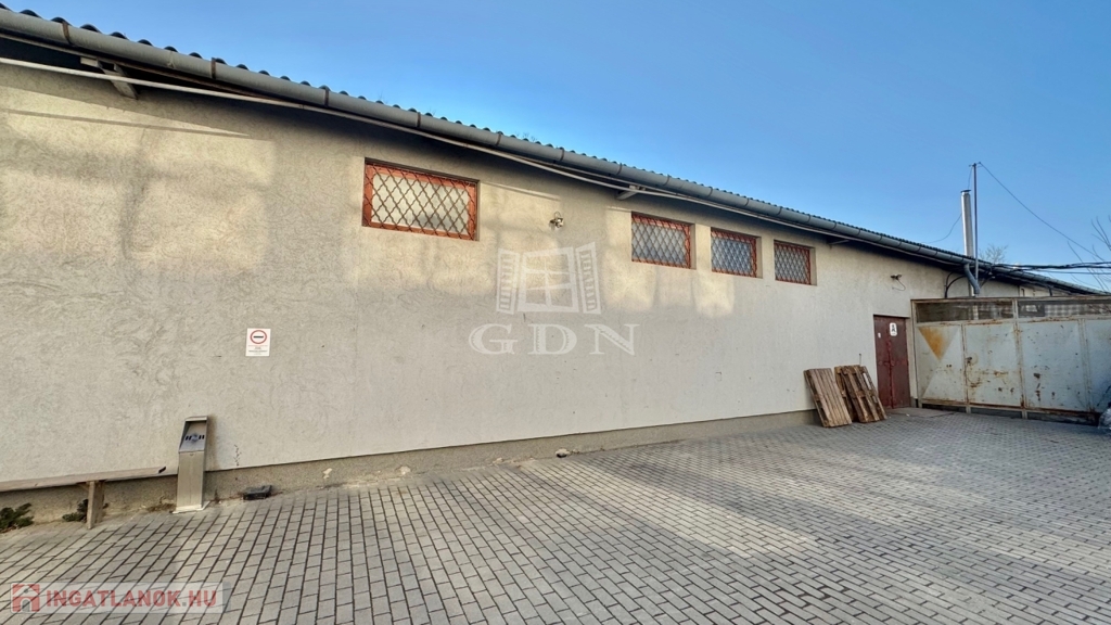 -452 m² raktár az épület mellett, három külön részre szeparálva