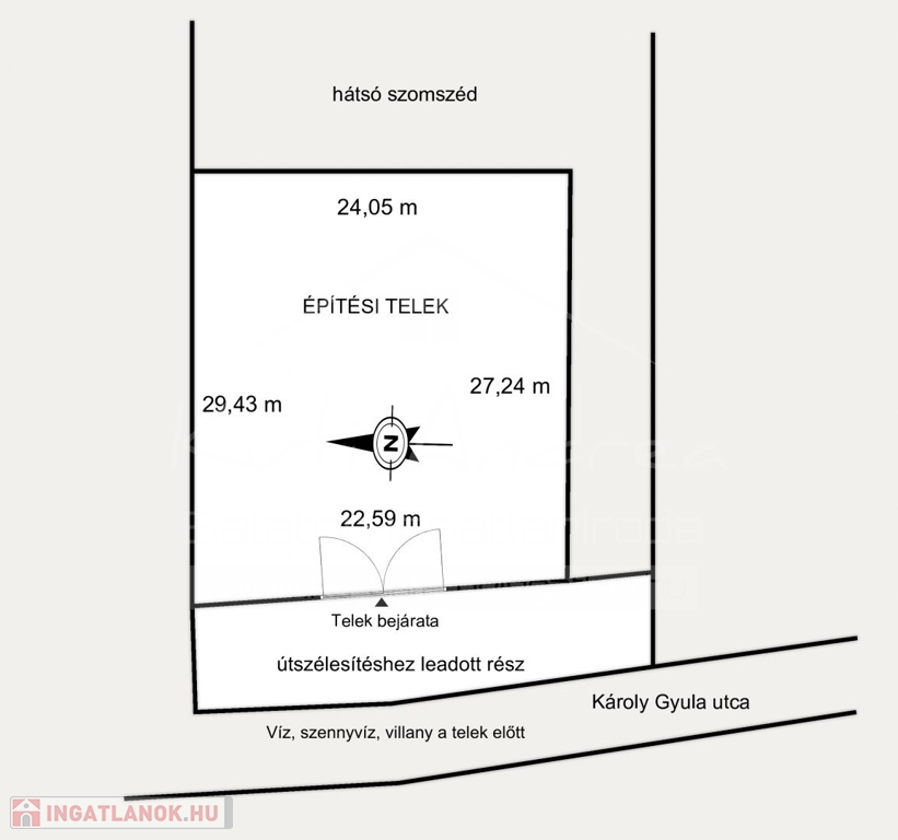 • Telek mérete 660m2, valamint az útszélesítéshez szükséges kötelző leadandó darab, már másik helyrajzi számon található, melynek ½-ed része is a leendő tulajdonoshoz fog tartozni.