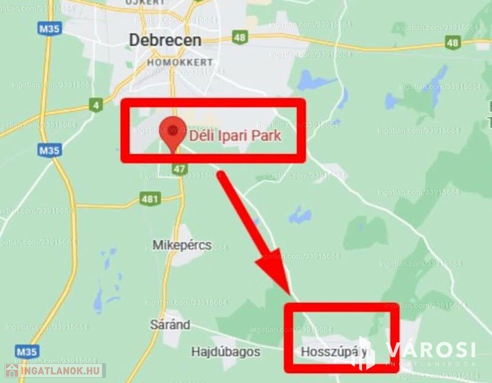Egyben vagy darabokban eladó művelési ágból kivont, 165138 m2-es különleges besorolású terület Debrecen mellett, a Déli Ipari park szomszédságéban. A telek előnyei közé tartozik a jó közlekedési lehetőség, amely megkönnyíti az eljutást a környező városokba és falvakba