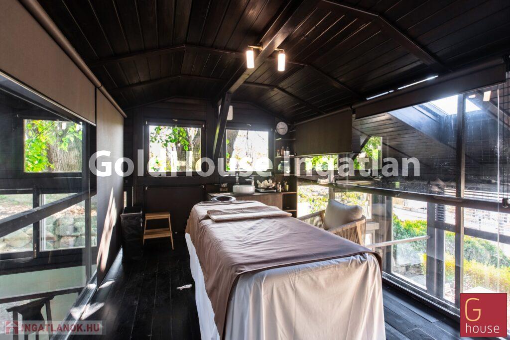 A kerthelyiségben a csodálatos borospince különleges hangulatú étteremmé lett átalakítva. A főépületen kívül a telek hátsó frontján található a fürdőház, wellness részleg: fűtött medence, szauna, jakuzzi, az emeleten privát, üveges masszázstér kialakítás - RFID chip-es beléptetéssel.