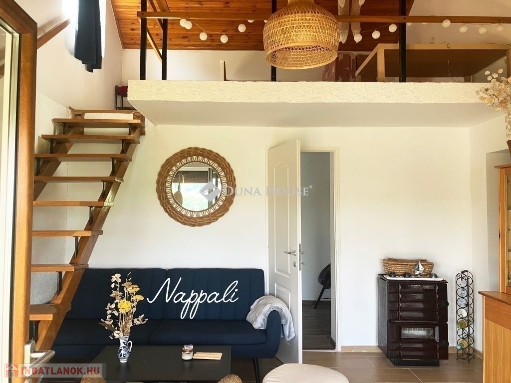 Panorámás, teljesen felújított ház Abaligeten, a tó közelében!Ideális választás pihenésre, kiadásra vagy befektetésnek azonnal költözhető, bútorozott ingatlan.Abaligeten, festői környezetben eladó egy 43 m²-es ház + 7 m² fedett terasszal, ahonnan gyönyörű panoráma nyílik a környékre.Az ingatlan két éve teljes körű felújításon esett át: új tető, vezetékek, 8 cm-es szigetelés, műanyag nyílászárók, klíma, valamint egy kandalló bekötési lehetősége is adott. A ház teljes berendezéssel és bútorzattal együtt kerül értékesítésre, így azonnal költözhető.A közeli tó és a nyugodt környezet miatt a ház tökéletes pihenésre, kiadásra vagy akár hosszú távú befektetésnek is kiváló választás.