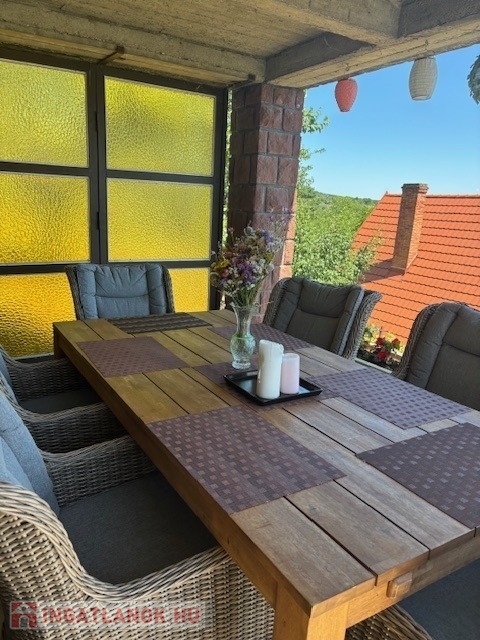 Veszprém vármegye, Ábrahámhegy 135m2-es panorámás hétvégi ház eladó. A kedvelt Balaton-parti település csendes utcájában található 3 szintes ingatlan szuterén részén pince, konyha és étkező (nappali), a földszinten teraszos nappali, két szoba, fürdőszoba, míg a tetőtérben erkélyes szoba és illemhelyiség mosdóval került kialakításra. A gyönyörű balatoni örökpanorámával rendelkező nyaralóhoz 709m2-es telken önálló garázs, és tároló is tartozik. A ház melegéről cserépkályha, kandalló és/vagy hőtárolós elektromos kályha gondoskodik. A közművek közül az áram, csatorna és a víz rendelkezésre áll, míg a gáz rákötési lehetőség a telken belül adott. A részben felújítandó, bútorozott ingatlan tehermentes, megvásárlása után azonnal birtokba vehető.