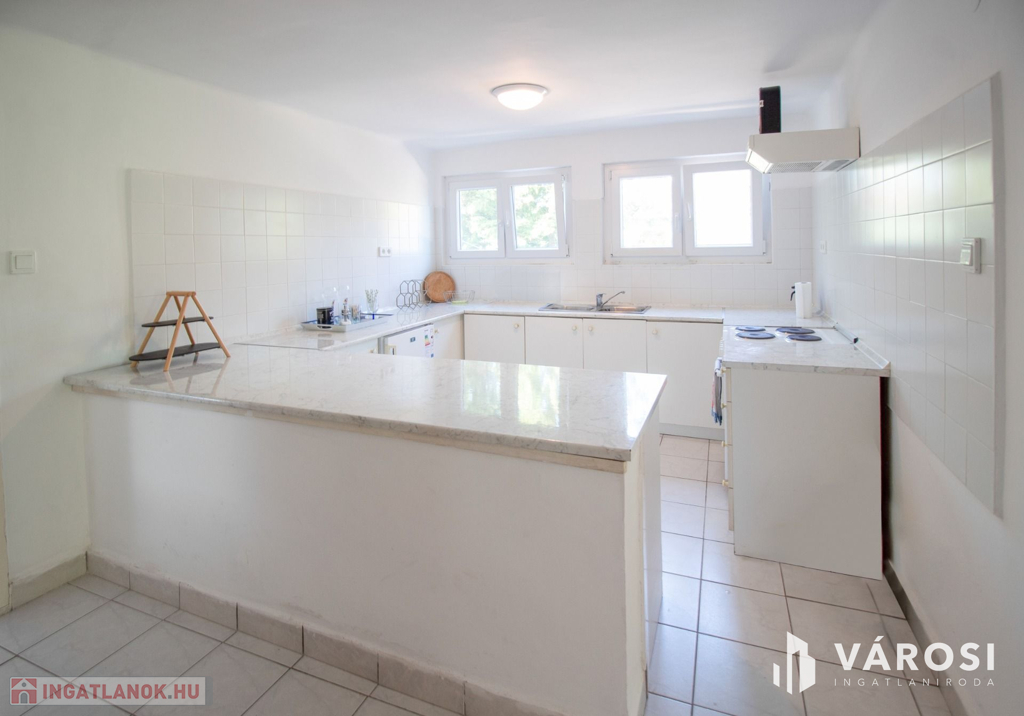 Ez a ritka elhelyezkedésű ingatlan kiváló statikai állapotnak örvend. A külső nyílászárók cseréje megtörtént. A fürdőszoba és a hidegburkolatok néhány évvel ezelőtt megújultak. A tetőtéri szobák, valamint a földszinti, hatalmas méretű szoba klímával ellátottak. Az ingatlan helyiségei: a földszinten egy tágas szoba, fürdőszoba, konyha, közlekedő, tároló, egy nappali étkezővel, a tetőtérben pedig 2 teljes értékű szoba, illetve fürdőszoba.