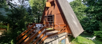 Vh-004108. Balatonvilágos kedvelt részén 608 nm-es gondozott, két utcafrontos építési telken, 70nm-es, Alpesi típusú 3 szintes , 2 lakóegységes hétvégi ház/ nyaraló eladó.