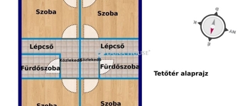 A földszinten konyha-étkező, szoba, fürdőszoba, a tetőtérben 2 szoba, közlekedő és fürdőszoba található.