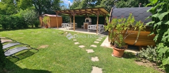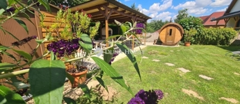 Az ingatlan értékét növeli az udvaron egy 20 nm-es kerti kiülő, kemence, fatüzelésű finn szauna és dézsa is.