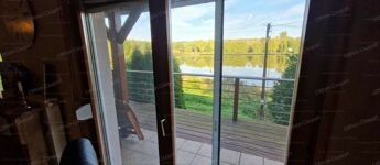 Gersekaráton a tóparton eladó egy családiház/nyaraló (720 nm2 telken) plusz egy vályogház külön telken (945 nm2) és helyrajziszámon.. A ház 2004-ben epült 30-as protherm téglából és 5 cm szigetelést kapott. A ház két szintes, az alsó szinten egy hatalmas garázs található amiből igény szerint más helyiségeket is ki lehet alakítani. A második szint a lakótér ami 78 négyzetméteres. Két szoba, két fürdőszoba, és a tóra panorámás konyha/étkező plusz nappali található benne. Fűtése gázkazánnal és radiátorokkal történik továbbá van egy hűtő/fűtő klíma is. A melegvizet egy bojler biztosítja. A családiház besorolása zártkert hétvégi ház, a vályogházé gyümölcsös és gazdasági epület. Mindkettőt ki kell függeszteni. Mindkét telek összközműves, csatorna, víz, villany, gáz. Teljes bútorzattal a két ingatlan együttes vételára 62 millió forint. Az ingatlanok egy 36 hektáros horgásztó partján fekszenek. A tó másik oldalán található a strand.