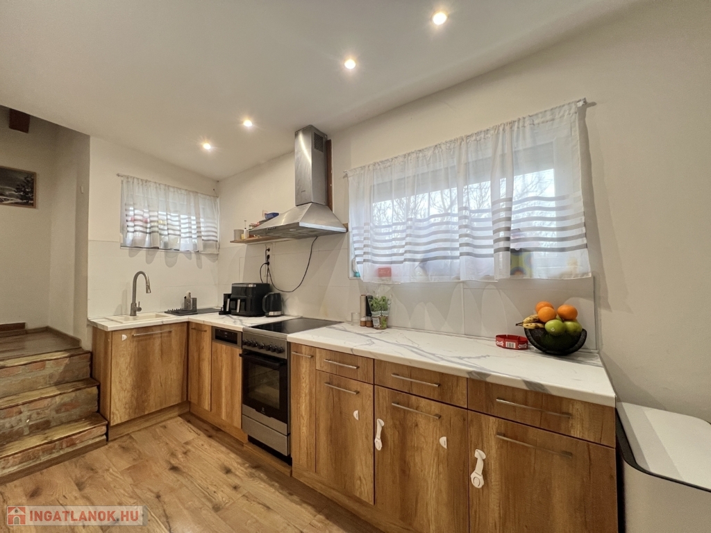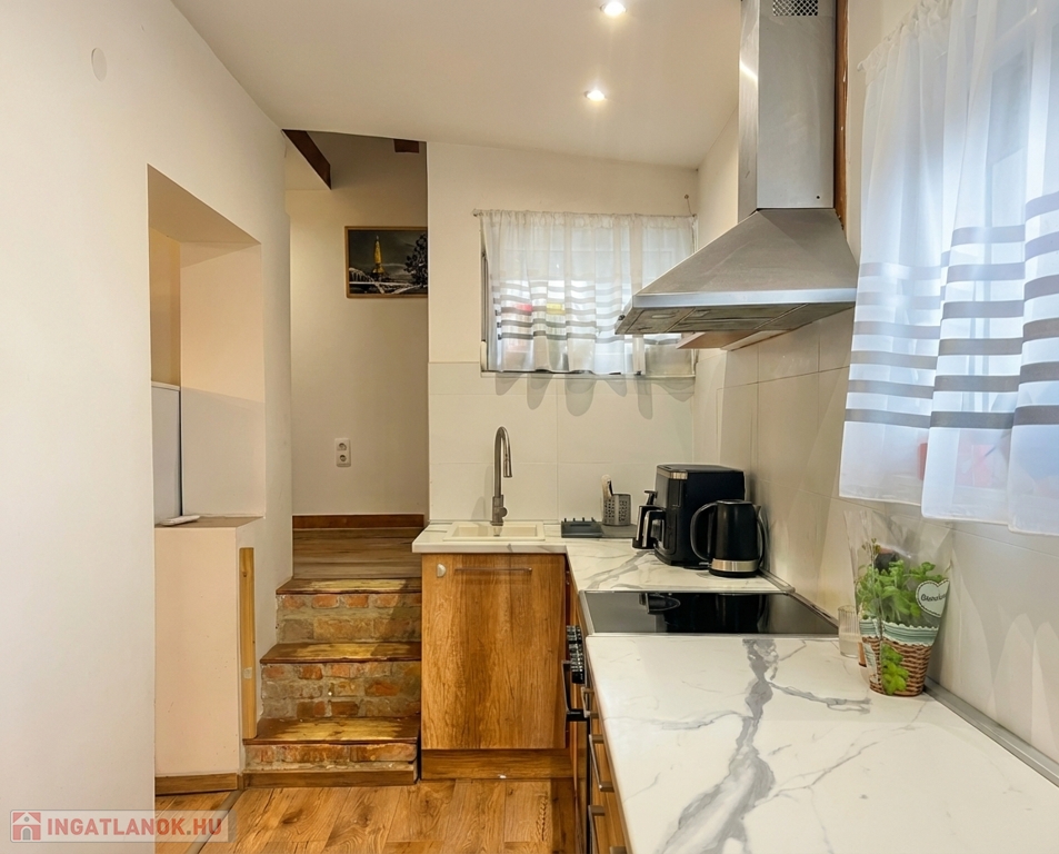 Kaposváron a Deseda tónál a toponári oldalon, teljes körben felújított 60 m2 hasznos alapterületű, ízlésesen kialakított lakóházként használt nyaraló eladó. Az épület alsó szintjén tágas nappali-konyha-étkező, belső udvar felé néző fedett terasz, előszoba, fürdőszoba-wc helyiségek kerültek kialakításra, a felső szinten a tetőtérben további 1,5 szoba van, valamint az alagsorban 2db tároló, pince található. Az épület rezsije kifejezetten kedvező, a fűtése mindkét szinten hűtő-fűtő légkondicionálókkal megoldott, a melegvíz ellátást új Ariston típusú smart villanybojler biztosítja. A ház teljeskörű felújításon esett át, amely során a nyílászárók, villany-, és vízvezetékek lettek kicserélve, valamint 15 cm-es külső-, homlokzati szigetelés került felhelyezésre, az udvaron – az épület mellett – egy személyautónak alkalmas fedett kocsibeálló lett kialakítva. Az ingatlanba a vezetékes víz, villany (32A) bevezetésre került, valamint emésztőgödör van. Az udvaron ásott kút, továbbá a pincében 2db 1000 literes vízgyűjtő tartály van. Telek: 1.165 m2 – Az ingatlan művelési ágból kivett, zártkerti besorolású, így a megvásárlása csak készpénzben lehetséges.