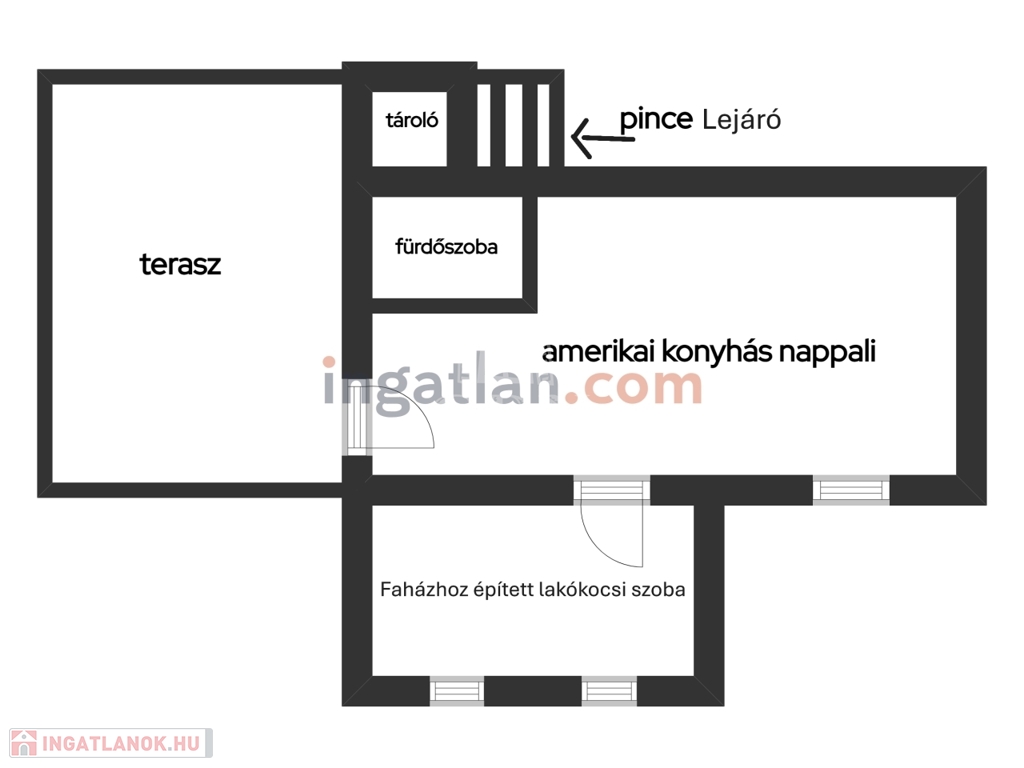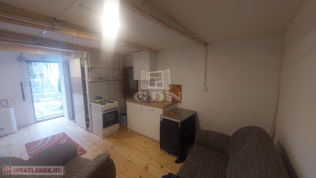 Egy kis faházat, miben található egy zuhanyzós fürdőszoba toalettel és egy amerikai konyhás nappali. Jelenlegi tulajdonos igényesen kibővítette egy szobával, amit lakokocsival oldott meg.