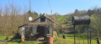 Vasváron, zártkerti övezetben eladó egy 1651 m²-es telken fekvő, tégla építésű hétvégi ház (gazdasági épület besorolás).