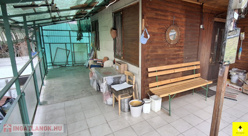 A házikó két szinten összesen 63 m2. Az épület alsó szintje kőből és téglából épült és egy 18 m2-es déli fekvésű terasz kapcsolódik hozzá, melyet szőlőlugas tesz árnyassá.