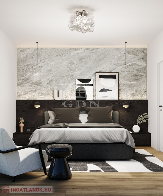 konyha, 3 hálószoba, nappali, gardróbszoba, 2 fürdőszoba, valamint vendég WC is található. A kert kapcsolatos földszinti lakás zöldfelülete megadja a kertesház hangulatát, ahol grillezhet, napozhat vagy akár egy jakuzzit is telepíthet. Az ingatlanhoz mélygarázsok és tárolok is megvásárolhatóak.