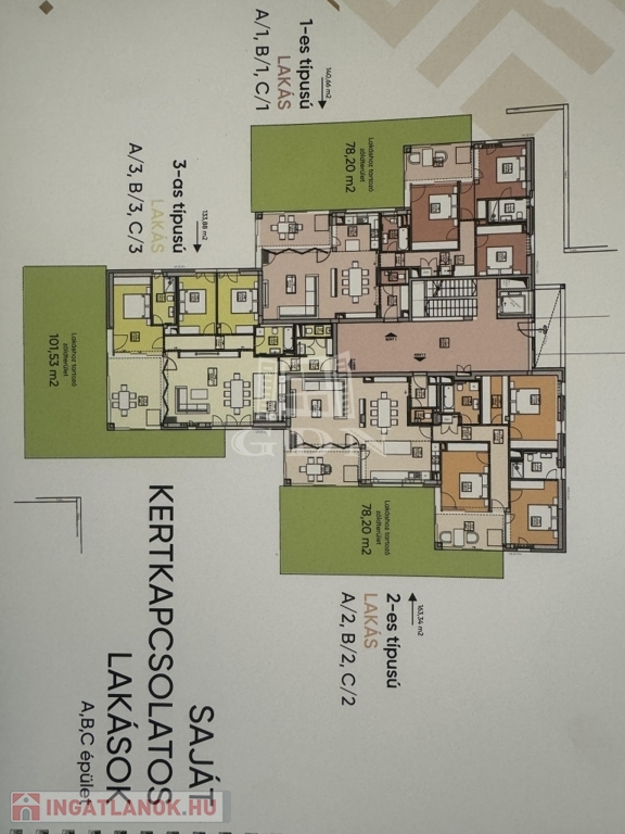 Az C/2-es típusú lakás 138,59 négyzetméteres, amelyhez 78,2 négyzetméteres saját kertkapcsolat