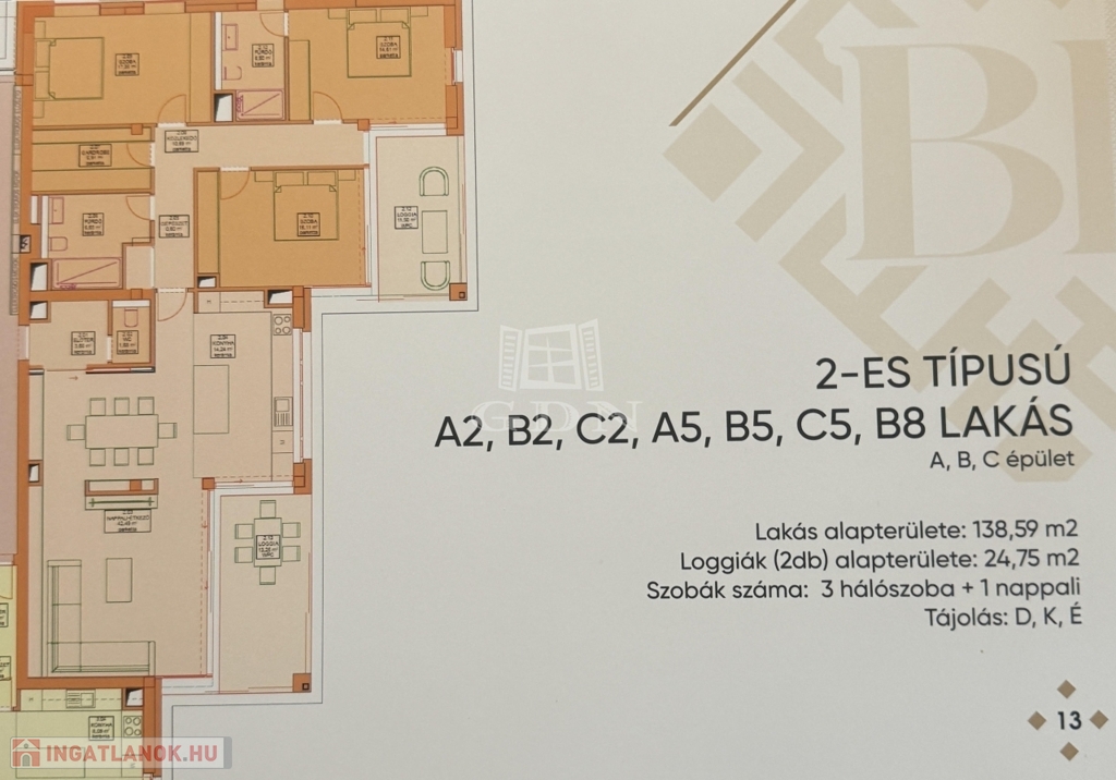 tartozik, 2 loggia amelyek alapterülete 24,75 négyzetméter. A 138,59 négyzetméteren amerikai