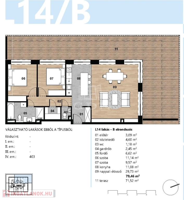 79 nm-es, 3 szobás, 72 nm-es terasszal, elismert szakmai háttérrel rendelkező tervezőiroda által megálmodott lakás, fűtéskész, 2027-ben történő átadással eladó.