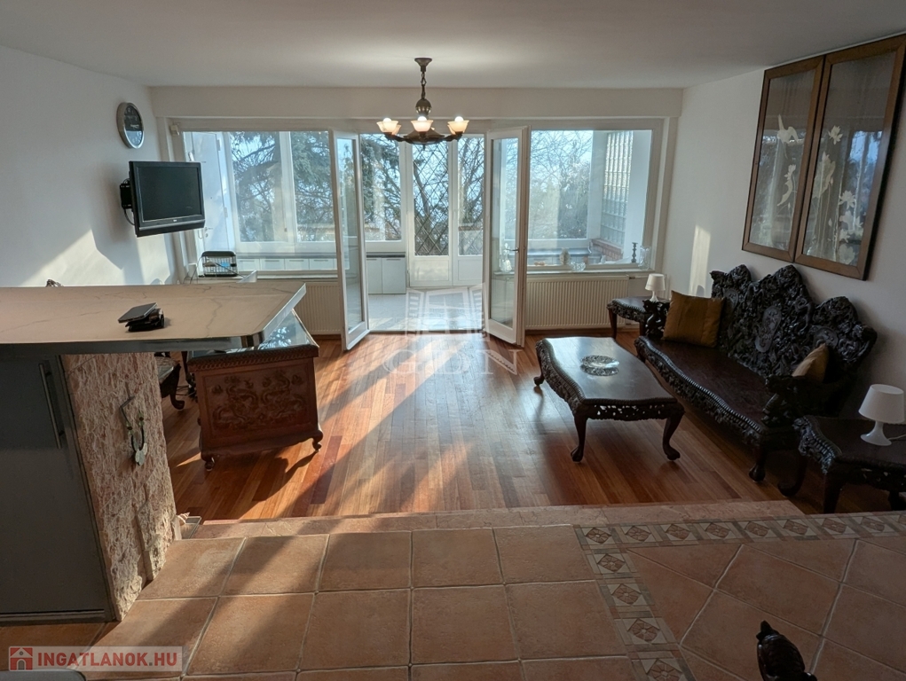 A lakásba a belépés egy 13 m2-es, hatalmas ablakokkal rendelkező teraszról történik, akár egy télikert, dolgozó sarok, hálószoba is válhat belőle. Utóbbi esetben a jelenlegi hálón keresztül lehetne megközelíteni a lakást.