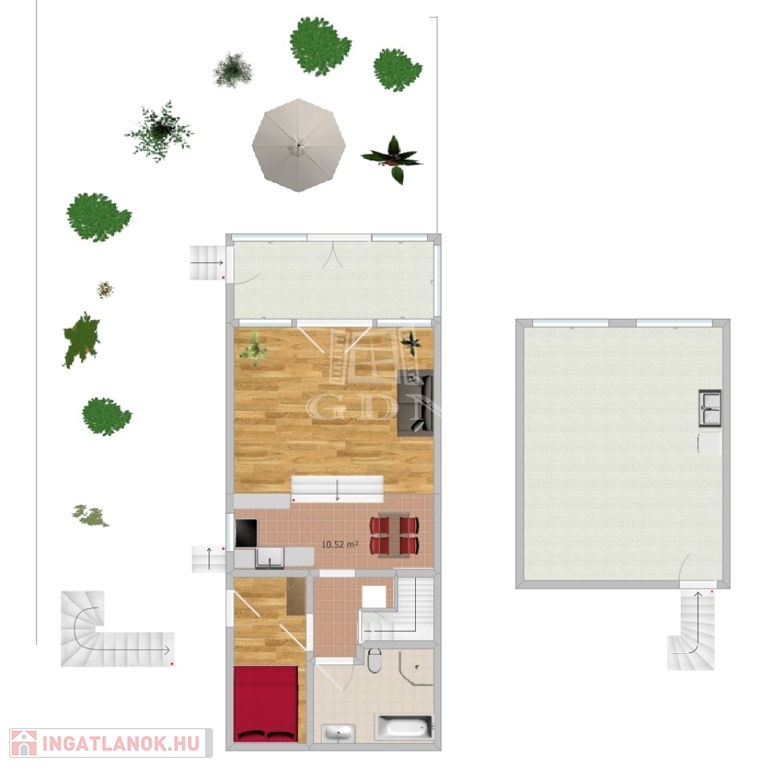 A 9 m²-es hálószoba közvetlen kertkapcsolattal rendelkezik – ideális a pihentető alváshoz.