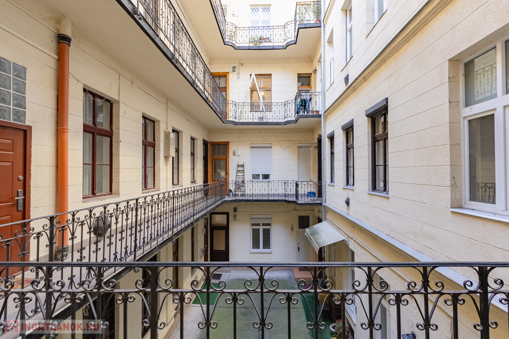 A villa hangulatú belső elrendezés és a villalakásokra jellemző stílusjegyeket hordozó ingatlan (kastélyparketta, nagy belmagasság, elegáns térkihasználás, tágas terek) az épület udvarából külön bejárattal rendelkezik, de az utca irányából első emelet magasságában található.