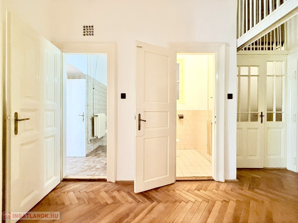 Az eredeti faparkettája, a nagyméretű, fa spaletta árnyékolókkal rendelkező ablakai, eredeti kilincsei mind harmóniában vannak, így az esztétikai felújítás után egy korhű ám mégis modern otthon varázsolható belőle.