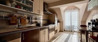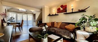 A lakás 3 különnyíló szobával rendelkezik (14, 16 és egy 33 m²-es nappali), utóbbiból közvetlen kijárat nyílik a napfényes, 10 m²-es teraszra. A konyha tágas, kamrával és francia erkéllyel. Külön fürdő, két WC, gardrób, valamint saját padlás és tároló is tartozik hozzá. A hálószobák klimatizáltak, a nappali igény esetén könnyen kettéosztható, így akár egy plusz szoba is kialakítható. A lakáshoz kizárólagos kertkapcsolat is jár.