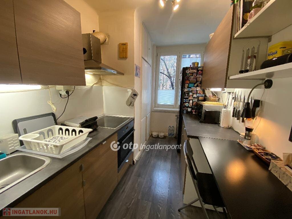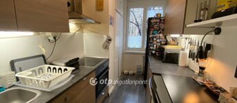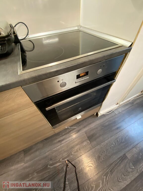 A beépített konyha GÉPESÍTETT, és egy KAMRA szekrénnyel felszerelt.