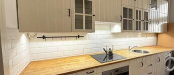 A konyha új bútorzatot kapott, a mosógép ki-és beállása ebben a helyiségben lett kialakítva.