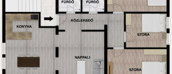 •Nappali + 3 hálószoba (tágas és jól élhető elosztás)