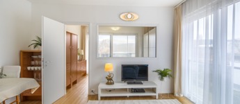A lakás egy csendes, családias, kis lakásszámú (15 lakásos) társasház első emeletén található, rendezett lakóközösséggel, pár perc sétára a Dunaparttól.