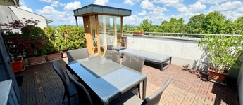 IV. kerületben, kertvárosi környezetben, kitűnő közlekedés és ellátottság mellett, csendes utcában, Megyer lakóparkban, 2005-ben, magas műszaki színvonalon épült, 4.szintes, exkluzív megjelenésű, társasház, legfelső szintjén penthouse tipusú, dupla teraszos (2X25 nm), panorámás kilátású, kiváló elosztású, 105 nm-es, 3 szobás, ablakos konyhás, napos-világos K-NY-i fekvésű, alacsony fenntartású, közös költség felújítási alappal: 21.000 Ft, új 2025-ben cserélt kondenzációs gázkazán fűtésű, egyedi mérésű, jó állapotú, klimatizált, azonnal birtokba vehető, tehermentes lakás, beépített gépesített konyhával, infra szaunával, a teraszokon kiépített öntözőrendszerrel, igényesen kialakított üveges téli kerttel, igény esetén teremgarázs beállóval, melynek ára a vételáron felül +5 millió Ft, kulturált lakóközösségű házban eladó.